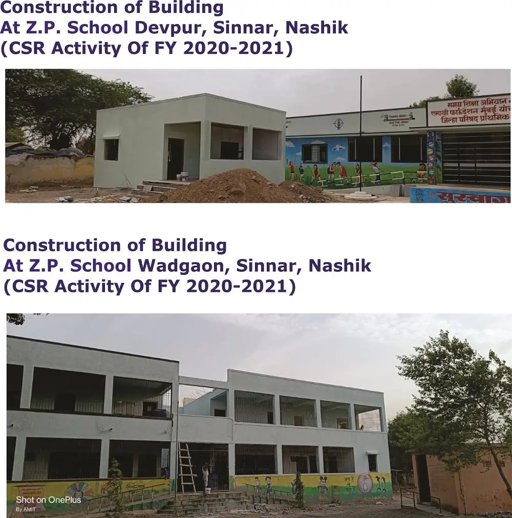 1. Construction of necessary infrastructure and providing of various educational equipments to 6 ZP Schools located in Nashik for promoting education – Ongoing Project