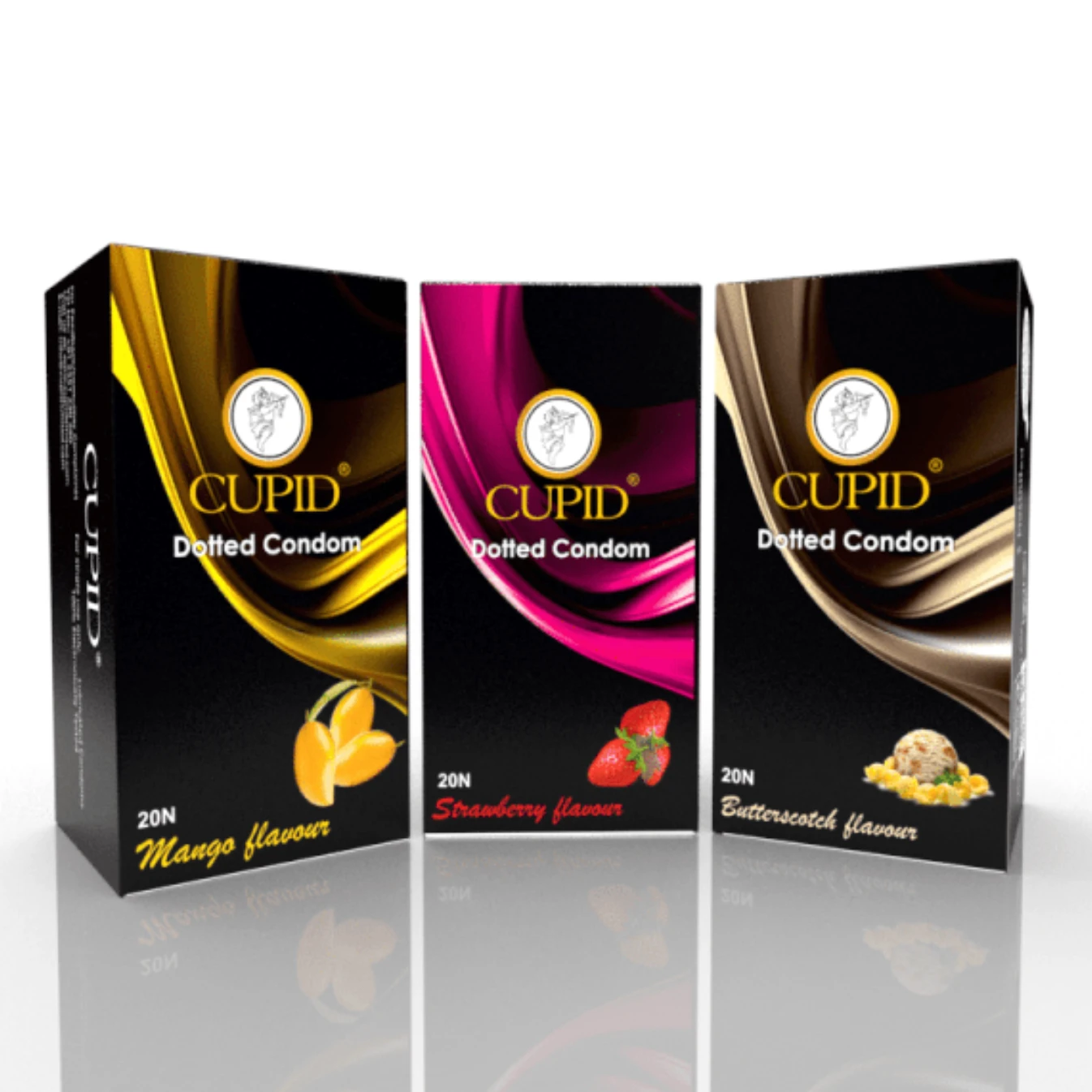 • Cupid offers the following flavors, colors, lubricants and Silicone Based lubricants in all its male condoms range.